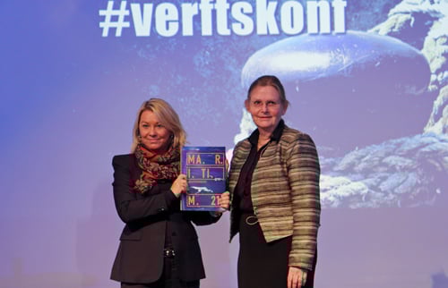- Den maritime næringen er blant våre mest innovative og fremtidsrettede næringer. De siste årene har imidlertid rederier, verft og utstyrsleverandører opplevd en krevende markedssituasjon. Men næringen har vist en utrolig evne og vilje til omstilling og tilpasning, sa næringsminister Monica Mæland da hun fikk overrakt Maritim21-strategien under Norsk Industris verftskonferanse i Ålesund.