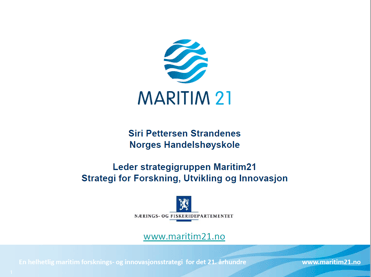 Maritim21 er en helhetlig maritim strategi for forskning, utvikling og innovasjon